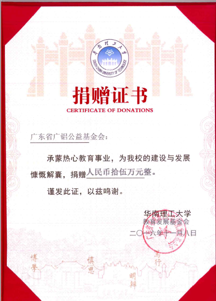 • 【捐資助學(xué)情,深深暖人心】廣鋁公益基金會(huì )向華南理工大學(xué)捐贈2016-2017年度廣鋁獎助學(xué)金