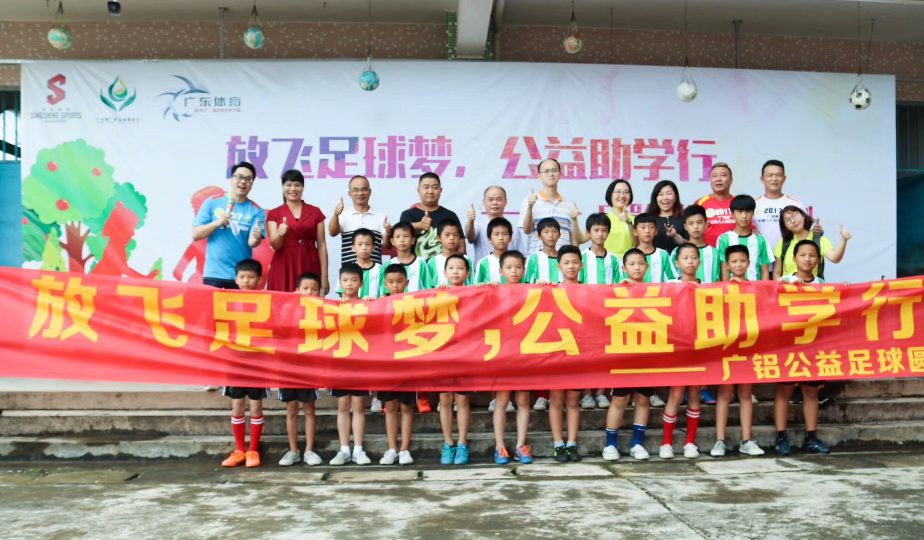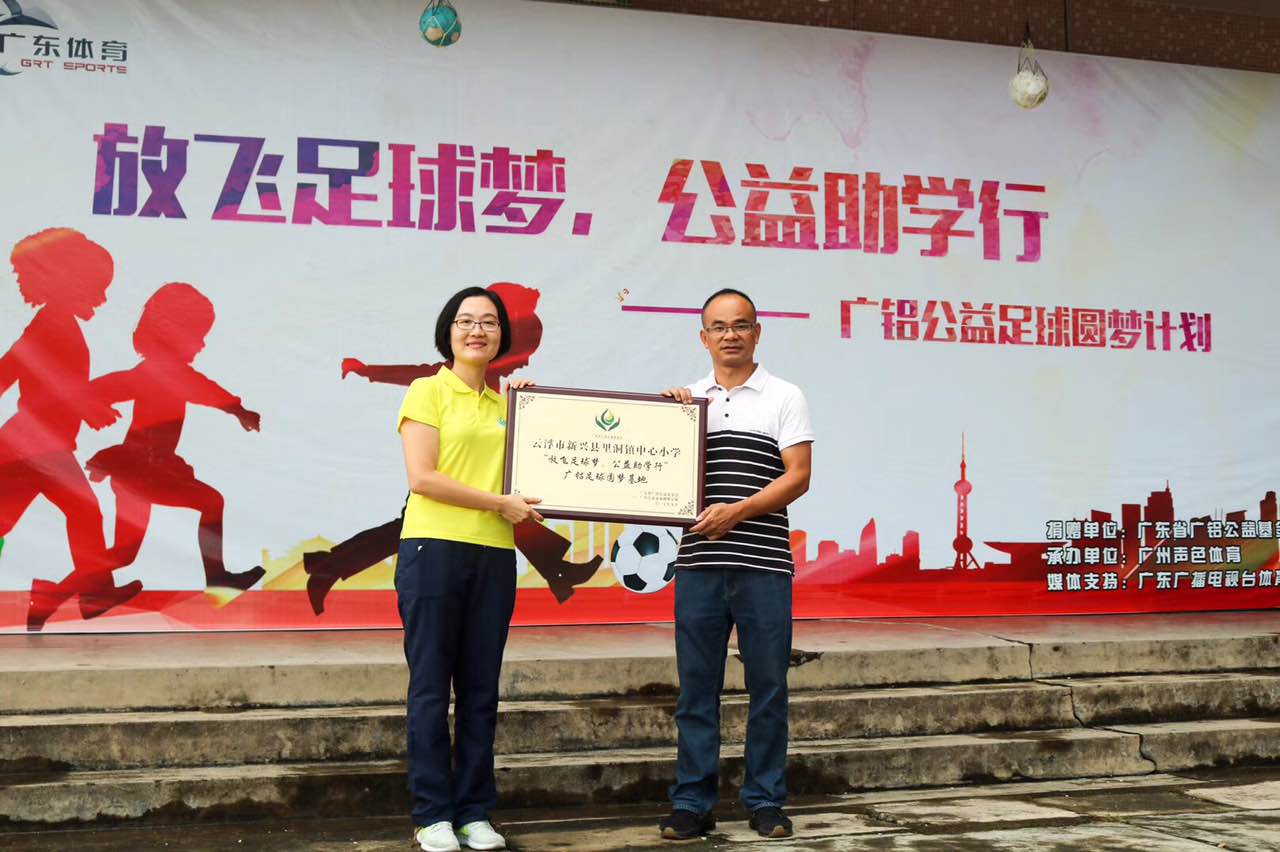 9月22日(周五)下午,廣鋁公益足球圓夢(mèng)計劃首站來(lái)到了云浮新興縣里洞鎮中心小學(xué),并在學(xué)校成立“廣鋁公益足球圓夢(mèng)基地”。