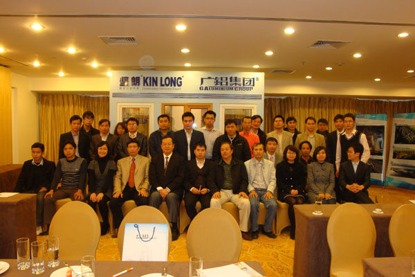 在推廣會(huì )之前,我集團公司還參加了在3月24至30日舉辦的當地著(zhù)名的越南(河內)建筑展,了解到當地建筑市場(chǎng)以PVC材料為主,此材料大概占市場(chǎng)總量的70%,其中以實(shí)德型材和海螺型材占據較大的市場(chǎng)份額,門(mén)窗加工企業(yè)也較多,多數以加工PVC材料為主,而涉及鋁型材加工的企業(yè)甚少。另外,我們還發(fā)現了當地企業(yè)的一個(gè)共性,所有加工企業(yè)要不專(zhuān)注PVC,要不就是PVC兼鋁合金,當中沒(méi)有純鋁合金門(mén)窗加工的企業(yè)。而且大多數工廠(chǎng)現正處于轉型階段,大有由主流PVC材料的基礎上轉向鋁型材加工的趨勢,且勢頭較為強勁,所以鋁型材在越南的開(kāi)發(fā)前景非常大,這正是我們品牌進(jìn)駐越南的最佳時(shí)機。正所謂“長(cháng)風(fēng)破浪會(huì )有時(shí),直掛云帆濟滄海”,我們廣鋁人在面對市場(chǎng)開(kāi)拓的困境時(shí)就是要抱有這樣的決心,堅定我們的步伐,讓廣鋁品牌享譽(yù)全球!