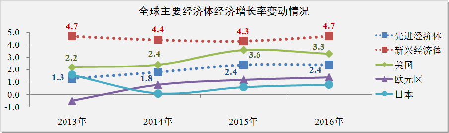 國際貨幣基金組織(IMF)在2015年全球經(jīng)濟發(fā)展展望預測報告中指出,目前全球經(jīng)濟呈現出四個(gè)趨勢:一是石油價(jià)格自去年9月份以來(lái)下跌近55%;二是全球經(jīng)濟增長(cháng)基本符合預期,但主要經(jīng)濟體增長(cháng)情況存在顯著(zhù)差異;三是美元退出QE后幣值上升近6%;四是新興經(jīng)濟體的利率及風(fēng)險利差逐步上升。IMF預計2015-2016年全球經(jīng)濟增長(cháng)率分別為3.5%和3.7%。相比2014年10月期《世界經(jīng)濟展望》的預測,IMF對全球經(jīng)濟增長(cháng)率下調了0.3個(gè)百分點(diǎn)。之所以做出這種調整,是因為對中國、俄羅斯、歐元區和日本經(jīng)濟前景做出了重新評估。應引起注意的是,美國是唯一增長(cháng)預測上調的主要經(jīng)濟體。