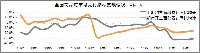 全國商品房市場(chǎng)先行指標出現好轉跡象。商品房土地購置面積和新建開(kāi)工面積是衡量房地產(chǎn)市場(chǎng)投資開(kāi)發(fā)的重要先行指標。5月份,雖然商品房土地購置面積和新建開(kāi)工面積均出現32%和16%的降幅,但降幅環(huán)比均有所收窄,房地產(chǎn)投資開(kāi)發(fā)潛力逐步好轉??傮w而言,5月份全國房地產(chǎn)市場(chǎng)先行指標和銷(xiāo)售指標的增速均出現了轉折,但該趨勢主要體現在一線(xiàn)城市及部分重點(diǎn)二線(xiàn)城市方面。