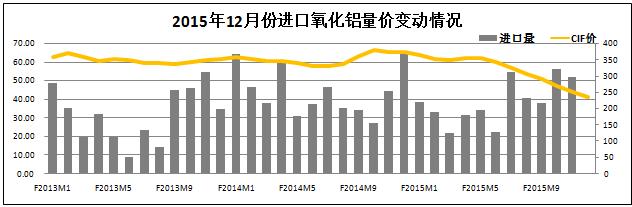 進(jìn)口市場(chǎng)情況。統計期內,進(jìn)口氧化鋁市場(chǎng)價(jià)格波動(dòng)趨勢基與國內市場(chǎng)基本一致。進(jìn)口量方面,11月全國進(jìn)口氧化鋁52萬(wàn)噸,較去年同期增長(cháng)18%,環(huán)比有所回落;價(jià)格方面,11月CIF均價(jià)236美元,折合人民幣1529元/噸,環(huán)比下降5.6%。進(jìn)口價(jià)格持續下跌折射出國際有色市場(chǎng)的悲觀(guān)氣氛仍在持續,同時(shí)進(jìn)口價(jià)格下跌速度放緩將會(huì )轉化進(jìn)口需求為國產(chǎn)需求。