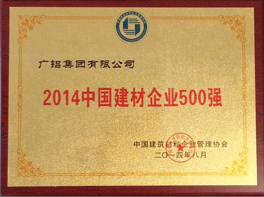 廣鋁集團再次攬獲“中國建材企業(yè)500強”殊榮