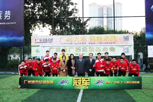 由廣州市足球協(xié)會(huì )主辦、廣東省廣鋁公益基金會(huì )獨家冠名贊助的廣州城市足球聯(lián)賽-2016“廣鋁杯”七人制足球聯(lián)賽于9月10日正式開(kāi)始,經(jīng)過(guò)兩個(gè)多月上百場(chǎng)的激烈角逐,于11月27日在天河體育東足球場(chǎng)落下帷幕,冠亞季軍順利誕生,各項單項獎也塵埃落定,并于同日晚上在亞洲國際大酒店舉行頒獎慶功晚宴。