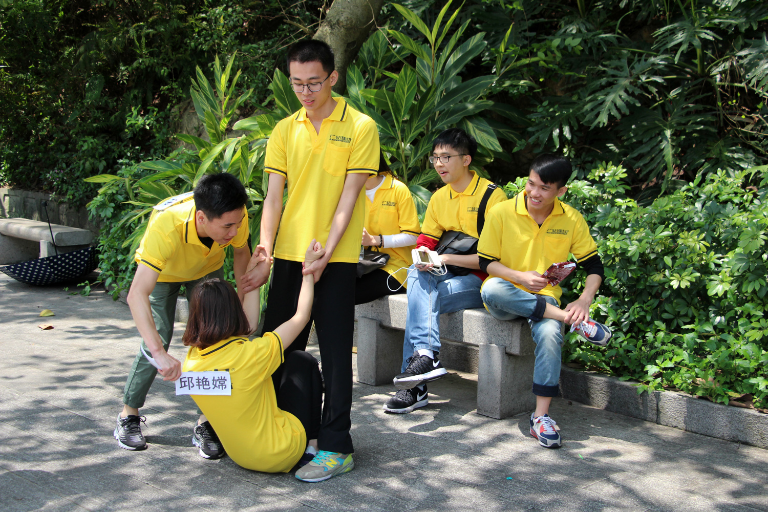 徒步登山途中,精心設計的多重關(guān)卡,考驗著(zhù)各小組的默契、團隊協(xié)作能力,以及應變能力。