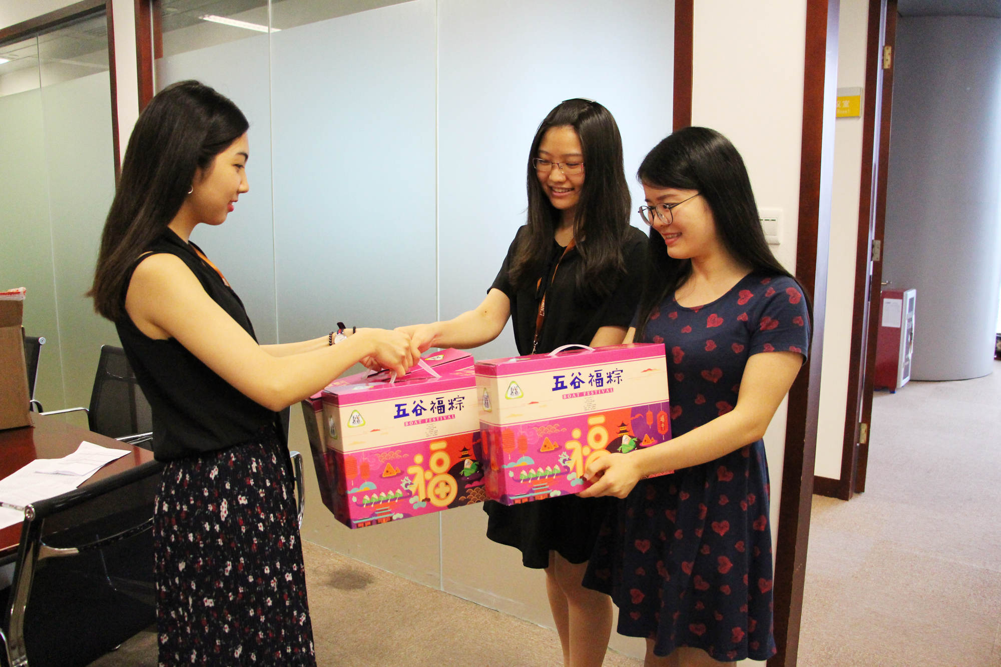 當天下午兩點(diǎn)整,整整十四個(gè)大箱子,滿(mǎn)滿(mǎn)的粽子禮盒出現在辦公室中,強烈的視覺(jué)效果引起了員工們的小小期待。