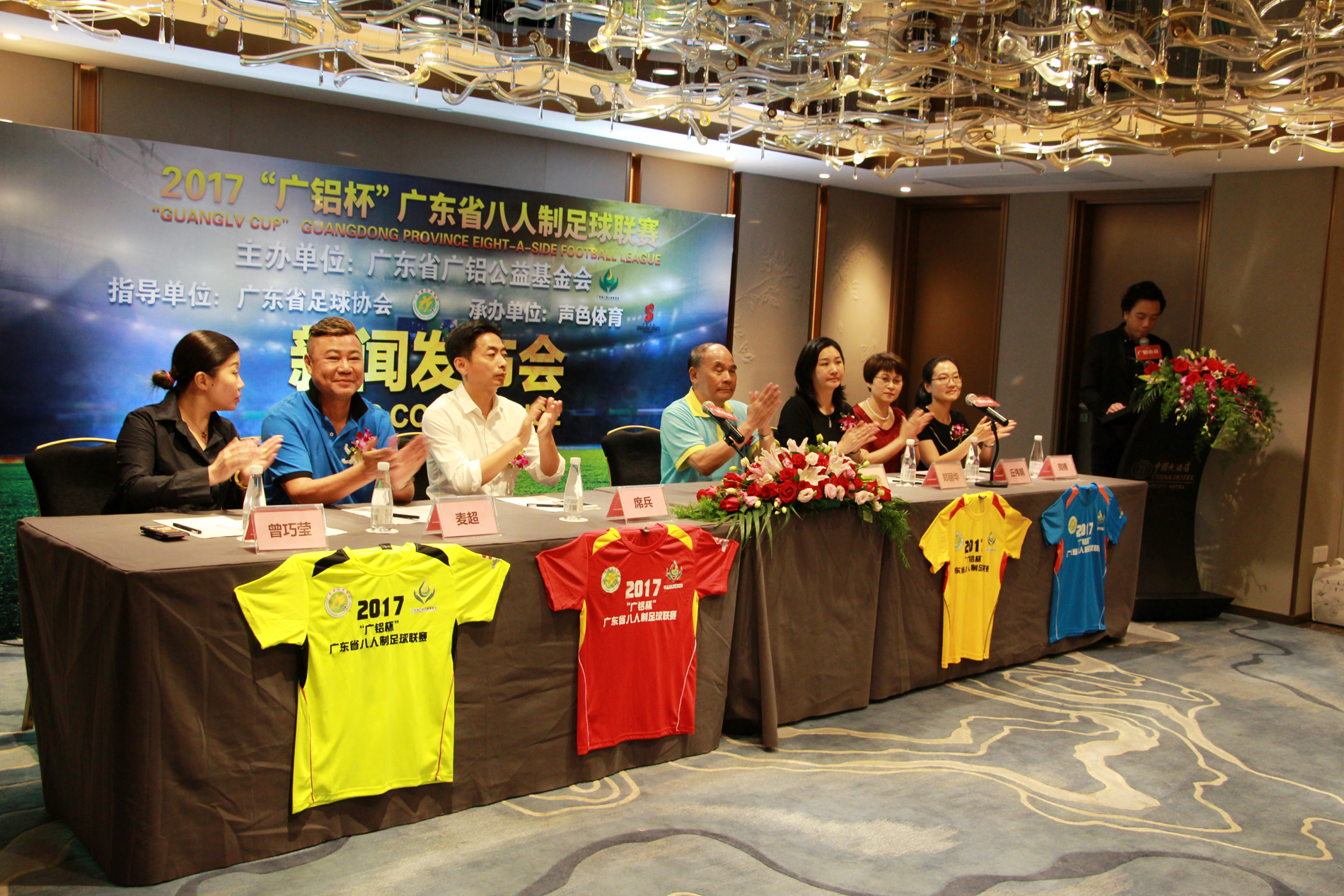 發(fā)稿時(shí)間:2017-06-08由廣東省足球協(xié)會(huì )擔任賽事指導,廣東省廣鋁公益基金會(huì )獨家冠名贊助并主辦,廣州聲色體育承辦的2017“廣鋁杯”廣東省八人制足球聯(lián)賽新聞發(fā)布會(huì )于6月8日在廣州中國大酒店隆重舉行。