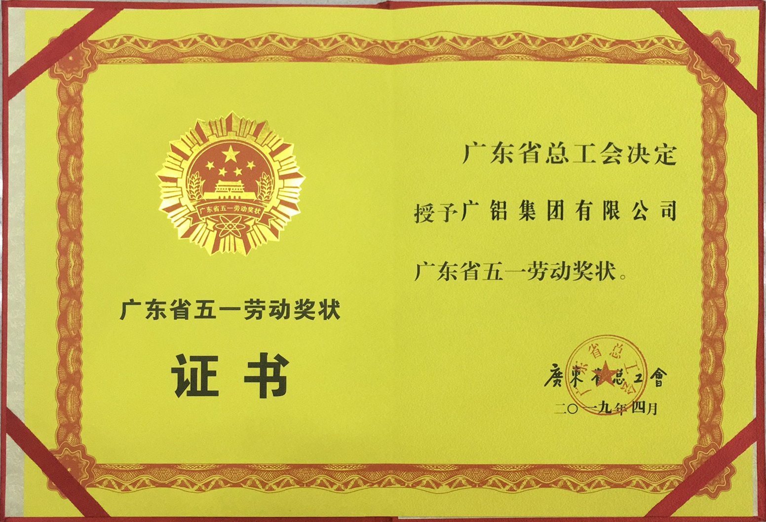 • 喜訊:廣鋁集團榮獲2019廣東省五一勞動(dòng)獎狀