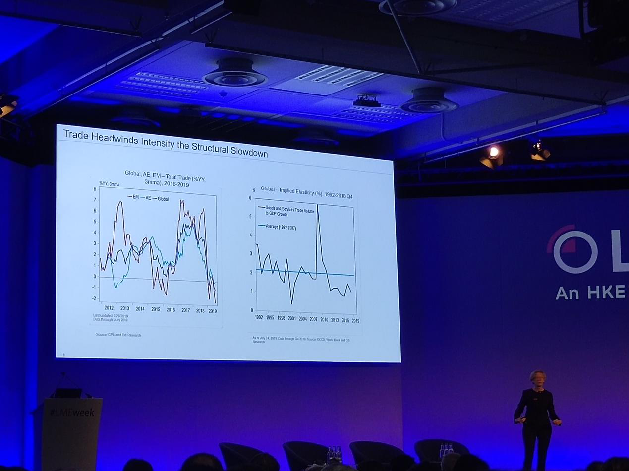 發(fā)稿時(shí)間:2019-10-312019年10月28日,一年一度的LME WEEK在英國倫敦正式召開(kāi)。上海金屬網(wǎng)對本次LME WEEK進(jìn)行全程報道,本文將為您帶來(lái)LME金屬研討會(huì )上的花旗銀行全球首席經(jīng)濟學(xué)家Catherine Mann關(guān)于“全球經(jīng)濟展望”的演講: